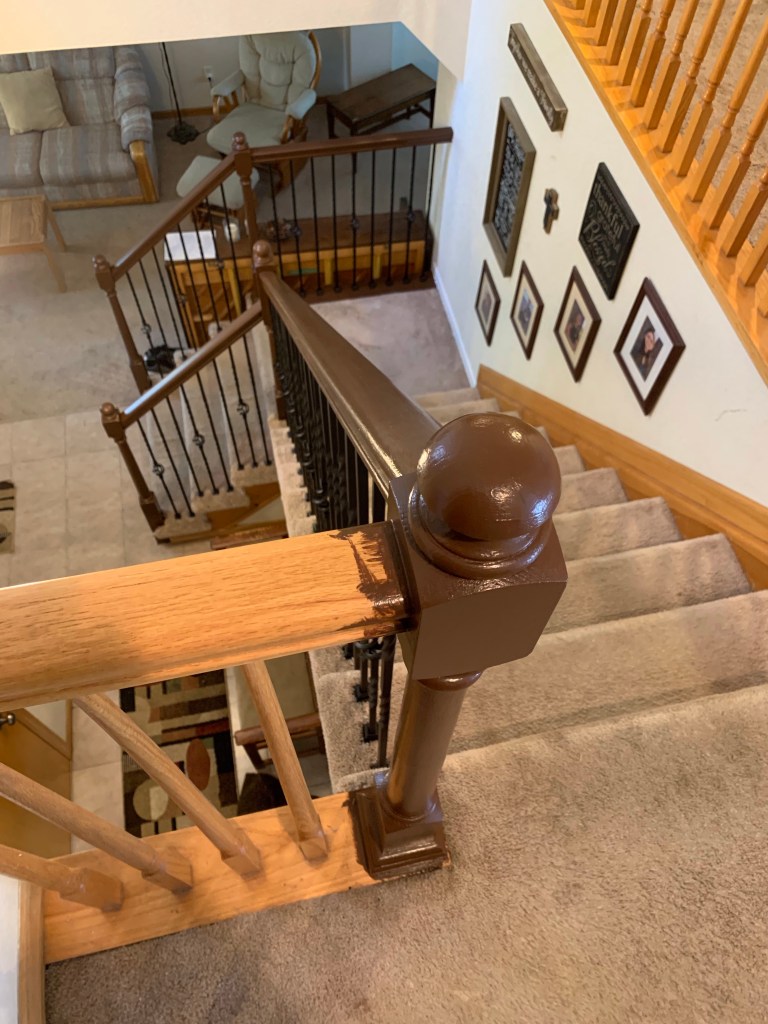It’s a close up of the post at the top of our stairs, right after I painted it. It’s a work in progress but I think it’s looking good!