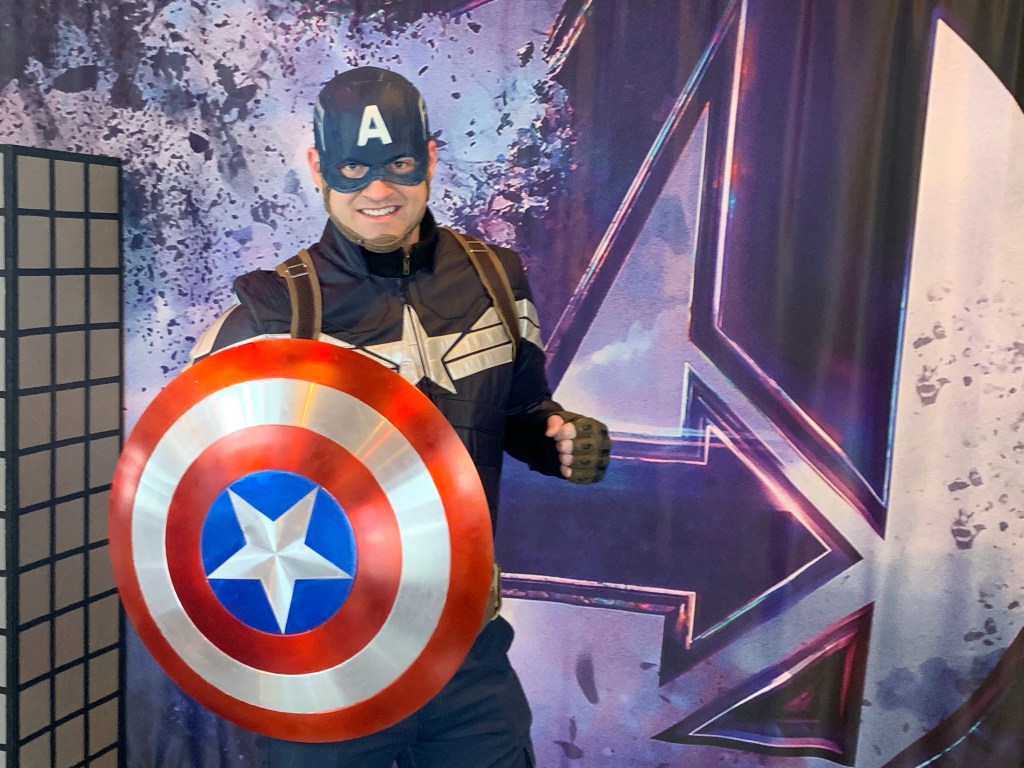 The photo, as you may have guessed, is Captain America’s shield, wielded here by my friend Sawyer to help make our church’s “At the Movies” series more memorable to those who attended.